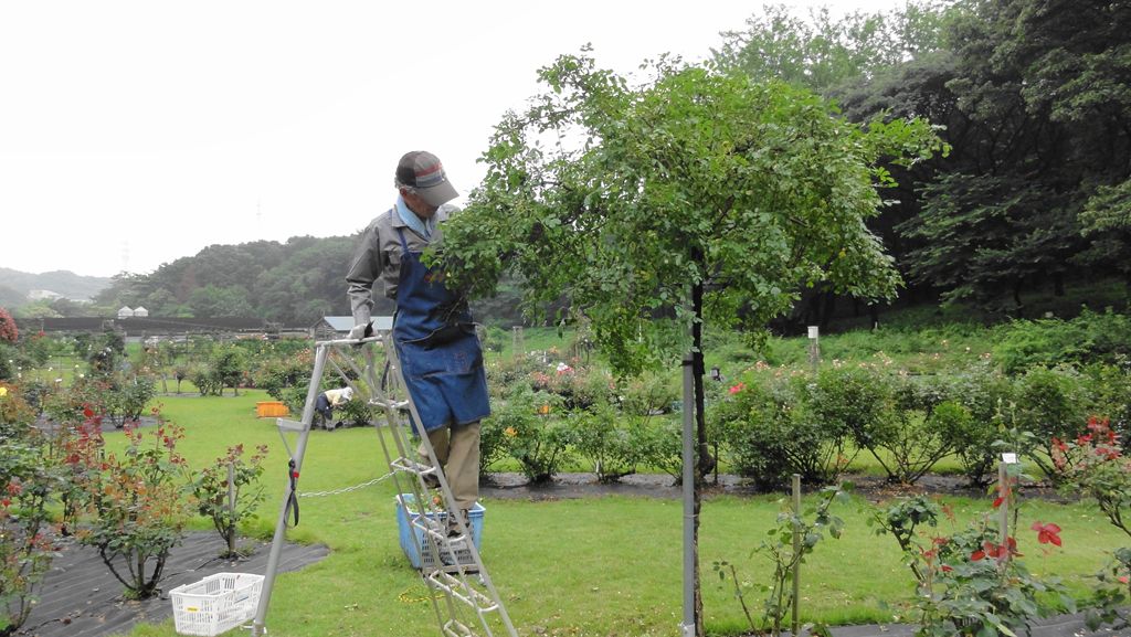 同大学の公開講座の一環として「つるばらの剪定・誘引」実習が野津田公園内ばら広場で行われました。町田ばら会の有志による裏方作業を公園管理の方とともに行った時のスナップ写真です。