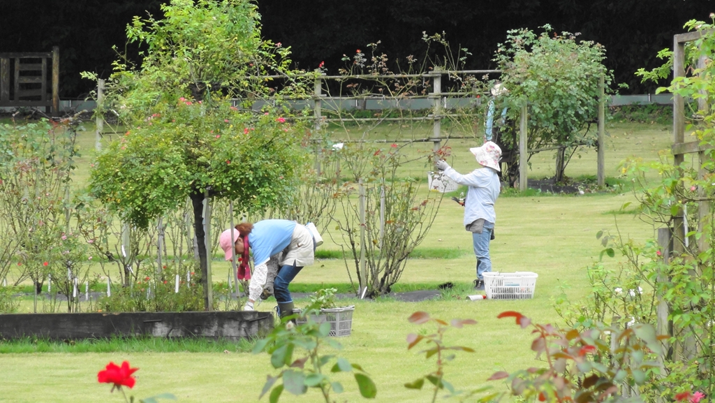 野津田公園のばら広場で、今日は主としてつるばらの誘引作業を実施しました。その時のスナップ写真です。