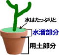 鉢植えの場合は、土の表面の乾き具合を確認しながら原則として毎日水をあげます。また、鉢は水はけと保水のバランスを両立させるため、肥料効果の持続性はあまりよくありません。たっぷりと水溜一杯に灌水すると同時に、希釈した液肥等で養分を補ってやることも必要です。