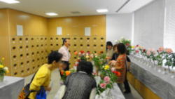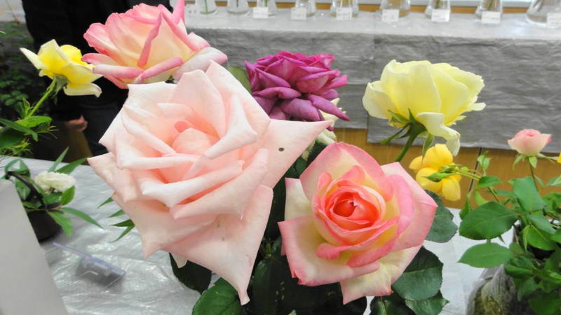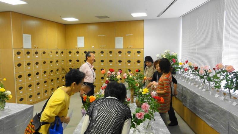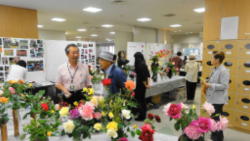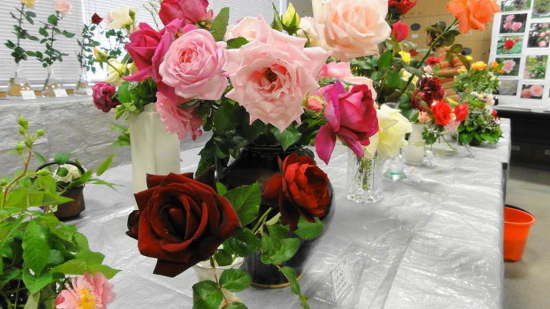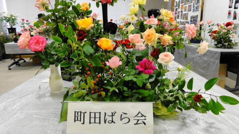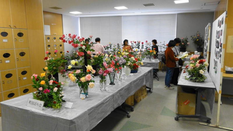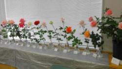 2010年10月22〜24日、今年も「町田市中央公民館祭り」の一環として、町田109ビル6階団体活動コーナーに会員の方々から集めたばらを展示しました。今年は気候の読みがとくに難しく、ばらがうまく咲かなかったり、展示会に間に合わなかったりで、良質なばらを集めるのが大変難しかったようです。それでも何とか机上を満たすことができ、関係者の間ではほっとした声が聞かれました。