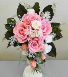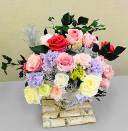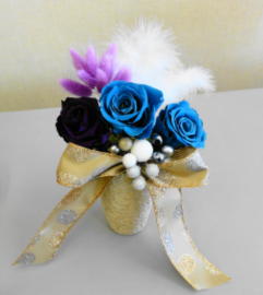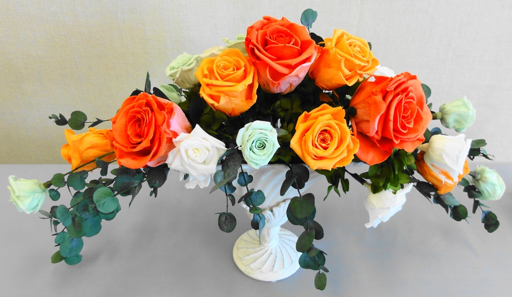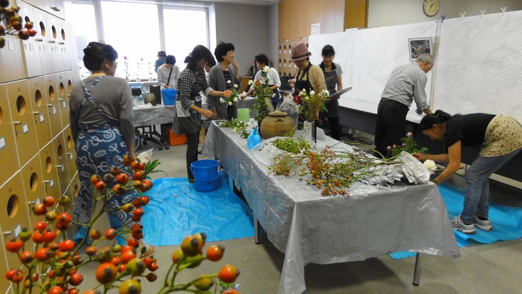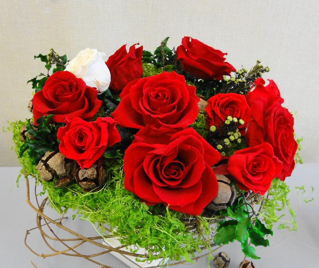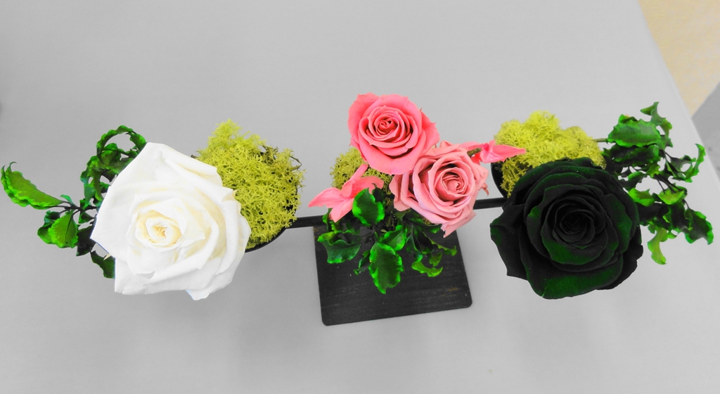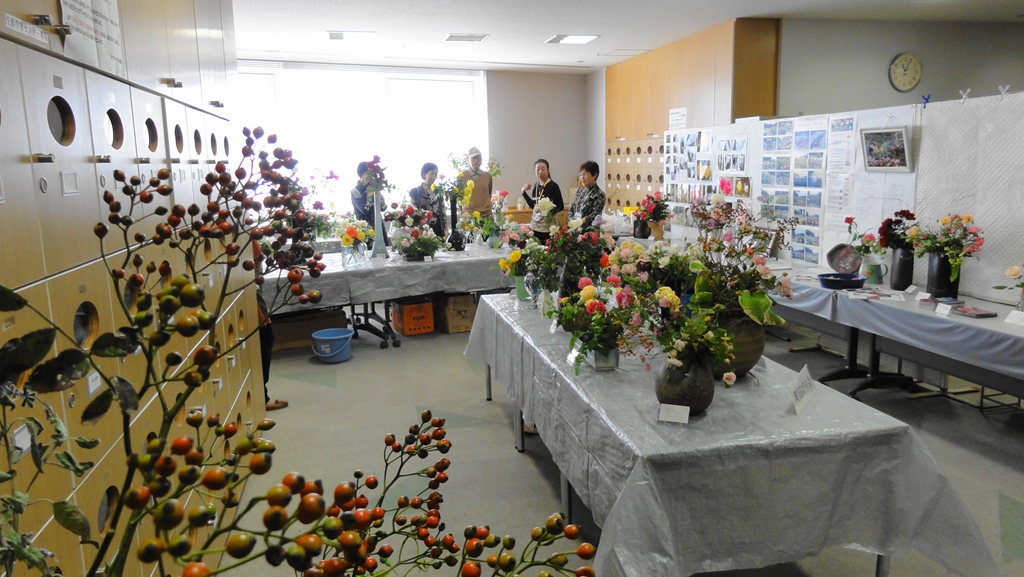 町田市の生涯学習センター祭りから少し遅れて、「町田市民文化祭」が町田市民ホールで10/27(土)〜11/3(土)の期間開催されました。その中で行われていた「いけばな展/町田華道協会」(11/1-11/3)では、ブリザード技法を使ったばらのアレンジメントが展示されていましたのでご紹介いたします。ブリザードフラワーとは自然の花や葉を立体状態のまま脱色して瞬間乾燥させ、のちに人工的に着色したもので、自然な風合いを残しながら人工的に作り上げた花といえましょう。ブライダルブーケなどのアレンジメントに人気があります。