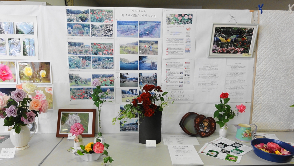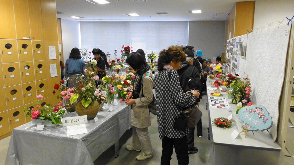 2012年10月19〜21日、今年から開催名称が「町田市中央公民館祭り」から「生涯学習センター祭り」と変更になりました。内容は特に変りはなく、実施場所も従来通り町田109ビルで行われました。ばらの展示スペースは従来の6階団体活動コーナーと変わりませんが、今年は2グループで使用していたスペースを町田ばら会のみの出展スペースとして使用できたため、パネル展示も2枚ほど増設でき、少しゆったりとした展示が可能となりました。今回は会員募集も積極的に行いましたので、新しい仲間も増えそうです。なお町田ばら会会員の方は合わせて会員専用ページもご覧ください。