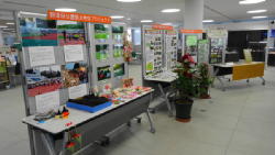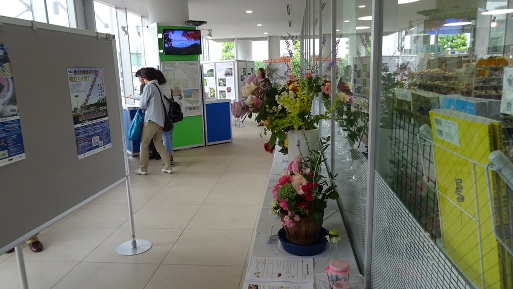 イベントは市役所1Fにある2つの展示スペースを使用し、イベントスタジオでは野津田公園の魅力を発信する中で、町田ばら会として、とくに野津田公園ばら広場の開発に至る経緯や町田ばら会とのかかわりについて紹介させていただきました。こちらは20日(金)17時の閉館を待ってブースの設営に取り掛かり、ポスター等の準備を行った後、23日(月)生ばらをアレンジセットし、27日(金)まで展示しました。
