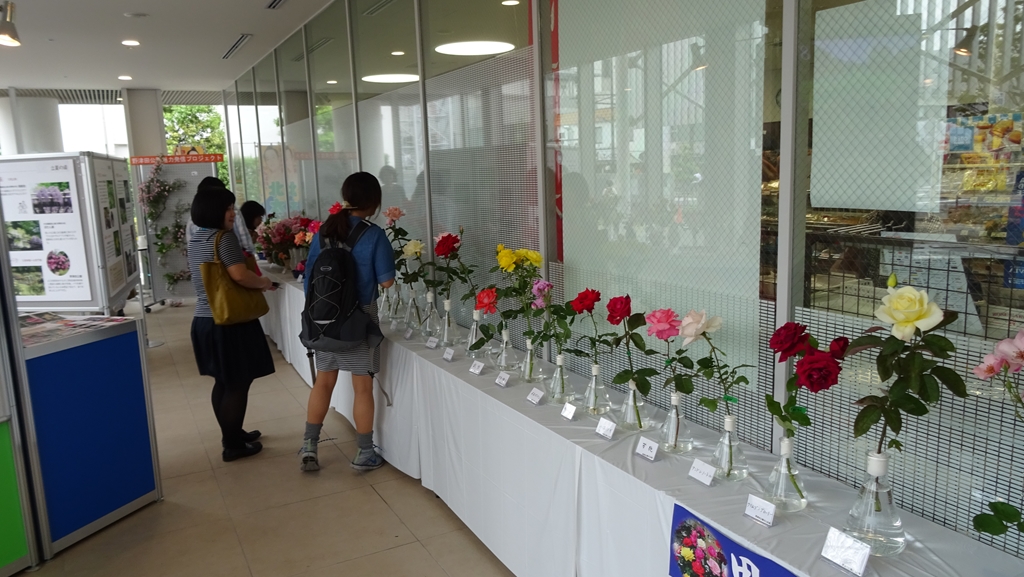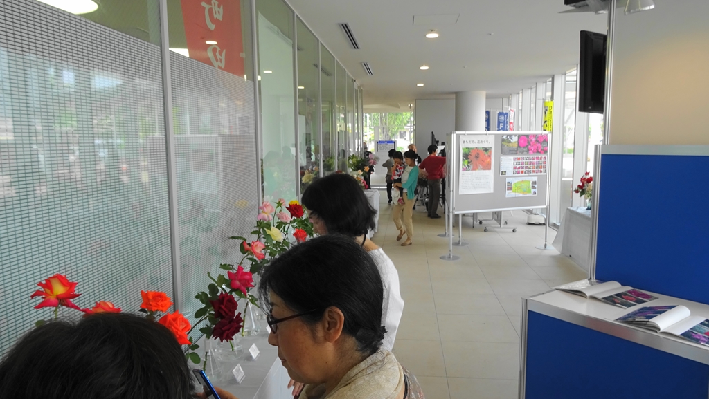 2016年5月26〜27日、今年は町田ばら会設立50周年記念にあたり、これまでと趣を変え、春のばら展を町田市役所1F展示ホールを使って開催いたしました。実施に当たっては町田市役所公園緑地課と協力し、野津田公園の魅力を発信するプロジェクトに協賛する形でばら展を開くことになりました。