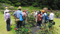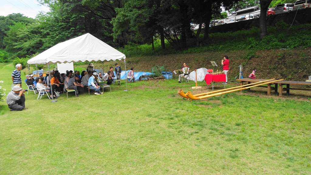 28日も昨日同様にとても良い天気、気温もほぼ昨日と同じ27℃まで上昇しました。人出は昨日よりさらに多くなり、とても賑やかになりました。この日は大きなイベントが2つ用意され、一つは町田ばら会会長によるばらの管理特別講演会、もう一つは楽器演奏会の開催です。特別公演は大変盛況で、受講者からは熱心な質問がひっきりなしに飛び交い、そのあとの実技指導でもその状況は最後まで変わりませんでした。楽器演奏会ではアルプホルンの演奏やカウベルの演奏など、多彩な演奏が行われ、たくさんの聴衆とともに優雅なひと時を共有することができました。