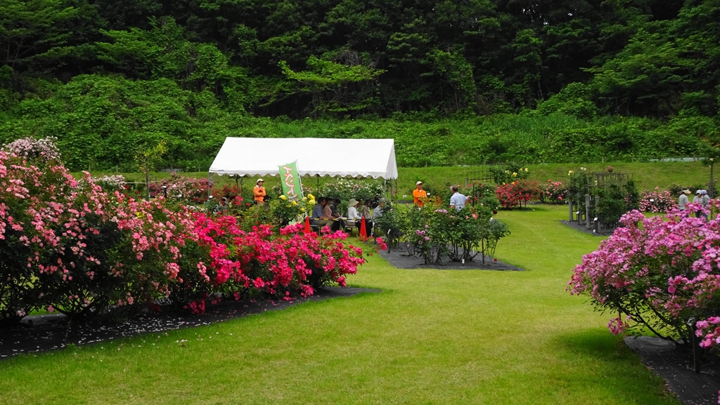 今年の春のばらイベントは昨年に引き続き野津田公園ばら広場にて「ばらまつり」を実施しました。日程はサッカー開催の関係で5月25日(金)〜26日(土)の2日間となりましたが、どちらも天候に恵まれ、盛況な開催となりました。今年のばらは関東近郊で少なくとも10日から2週間程度早い開花時期となり、例年通り5/25開催では花がすでに終わりかけているのではとの心配もありましたが、開花が早かった割には花持ちが良く、ばら祭り期間中もまだまだばらを楽しむことができて良かったと思います。