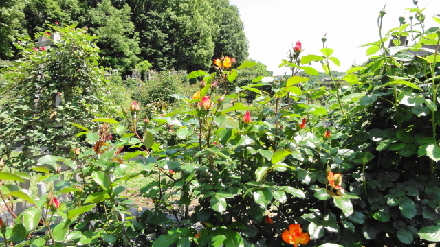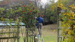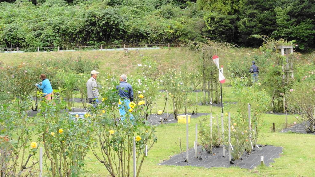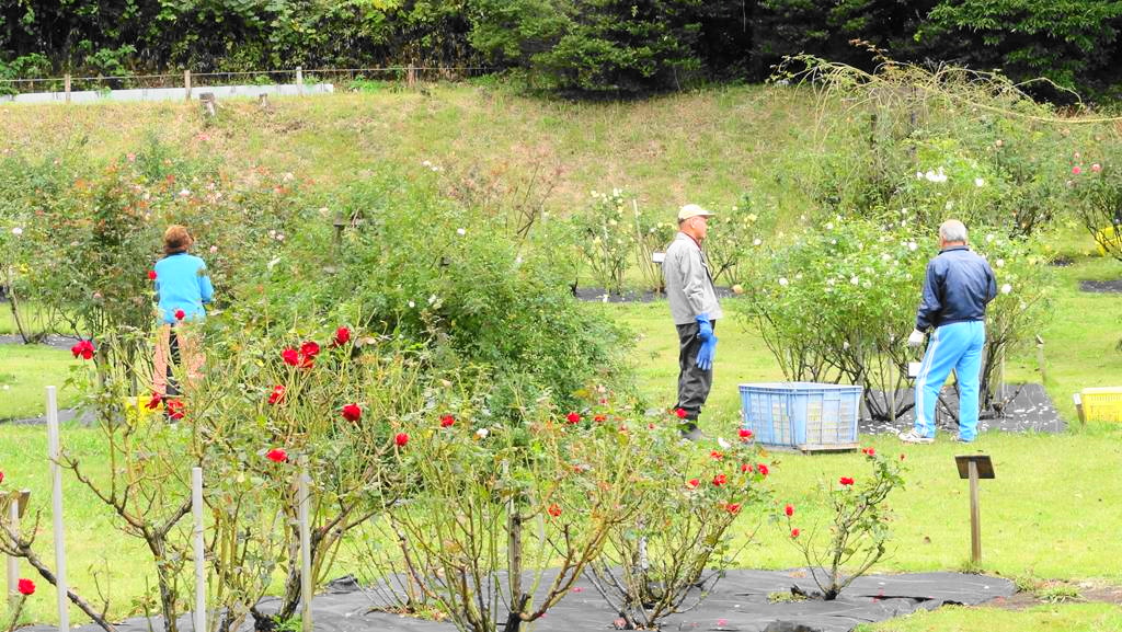 野津田ばら広場の整備ボランティアの活動スナップ写真です。今日はこれまで約2年間、野津田公園のばら広場管理に尽力していただいた平子さんが間もなくご結婚と同時に退職して遠くへ移られるため、記念写真を撮りました。