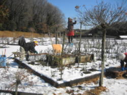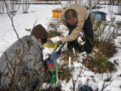 まだ雪の残る野津田公園のばら広場整枝剪定および名札の修理などを行いました。合間に日なたでのお茶会、雪の残る斜面でのそり遊びなど、盛りだくさんの内容でした。