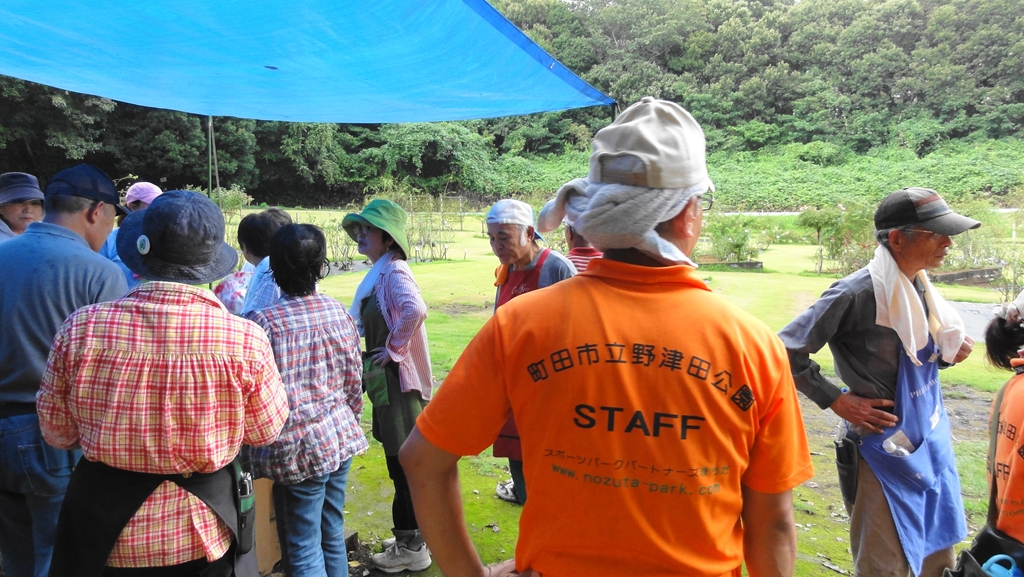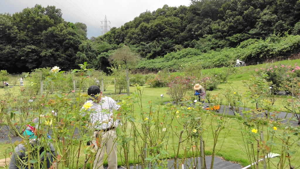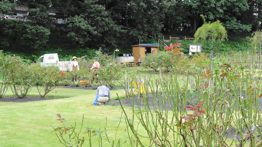 野津田公園のばら広場で、今日は主としてつるばらの誘引作業を実施しました。その時のスナップ写真です。