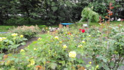 現行のばら広場の植栽面積は約4700平米ですが、計画案ではこれが大幅に縮小され、3か所に分散されるとのことです。3か所の合計面積は3800平米といわれていますが、そのうちの一つが上図に示した「子供の遊具」跡地1400平米だそうです。後の2か所は「ウエルカムガーデン」というバスロータリーの周りに細長く遊歩道の景観として作る予定で2400平米だそうです。