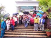 キレイに整備された庭園 入口階段で記念写真