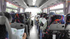 横浜西口の天理ビル前からは1日往復11本の無料送迎バスが運行(水曜日は運休)されていますので、今回はこちらを利用して現地へ向かうことにしました・・・・が、なんと満員で3名ほど残されてしまいました。そのうちの一人が筆者ですが、「タクシーで割り勘で行きましょう」と声をかけて、現地へ無事到着しました。一人当たり200〜300円程度の出費でした。