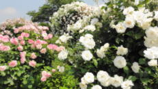 続けて群馬県太田市にある「アンディー&ウィリアムス ボタニック・ガーデン」に向かいました。こちらはジョウフル本田というホームセンターが運営しているイングリッシュガーデンです。必ずしもばらばかりではありませんが、22の連なるテーマ別英国風ガーデンを楽しむことができます。こちらのガーデンはばらに関してはやや見ごろを過ぎていることもあり、物足りなさを感じてしまいましたが、すぐ隣のホームセンターではばら苗の販売が充実しており、思わず2つ3つと苗を買い込んだ人も少なくなかったようです。