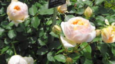 1点目は【ル・エール(旧名:ラムのつぶやき)】大和バラ園2010年作です。ただの黄色ではありません。「輝くような黄色」、素晴らしい深みのある発色で、ここまでの黄色はなかなかお目にかかれません。かなり周りを圧倒していました。中輪のディープカップ咲き、甘い香りをほのかに燻らせ、とても魅力的で、歌手の倖田來未さんデビュー10周年を記念して京阪園芸の小山内先生とコラボして作られたそうです。ミーハー(流行り)で選んだつもりはなく、後から調べて気が付いたことですが、ガーデンばらとしてぜひとも一つ揃えたいと思わせる、そんなばらではないかと思います。