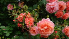1点目は【スイート・ドリーム】英1988年作シュラブあるいは半つる性です。花は、透明感があるとてもきれいなアプリコットオレンジで、小輪の可愛らしいロゼット咲きです。お花屋さんで切ばらとして売っていそうな可愛らしい花弁で、咲いたらちょっとプレゼントしたくなる、そんな雰囲気を持つばらではないでしょうか。最盛期には枝を覆い尽くすほどの房咲きになるそうで、花つきの良さからお庭につる仕立てで楽しんでも良いのではと思います。