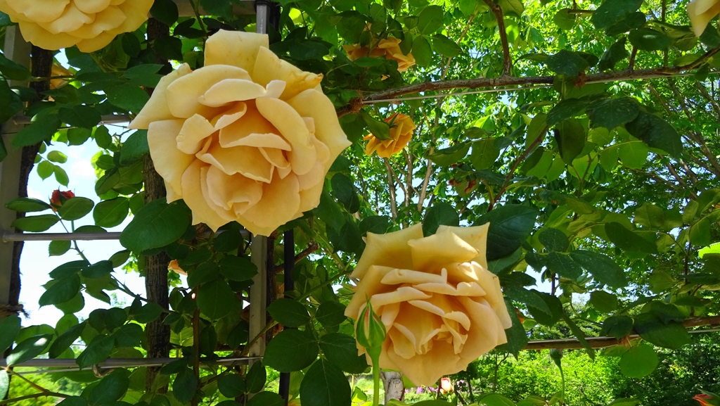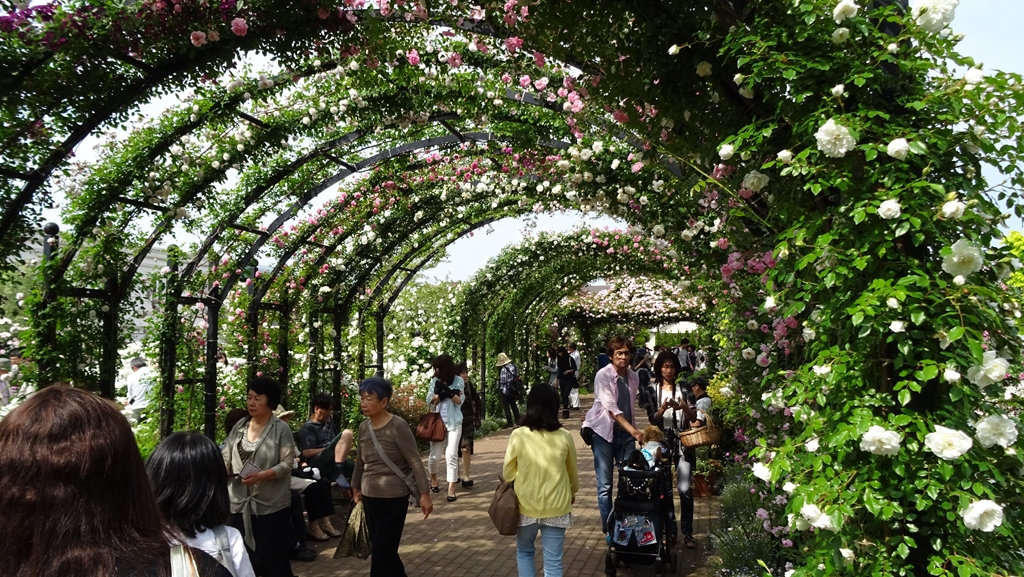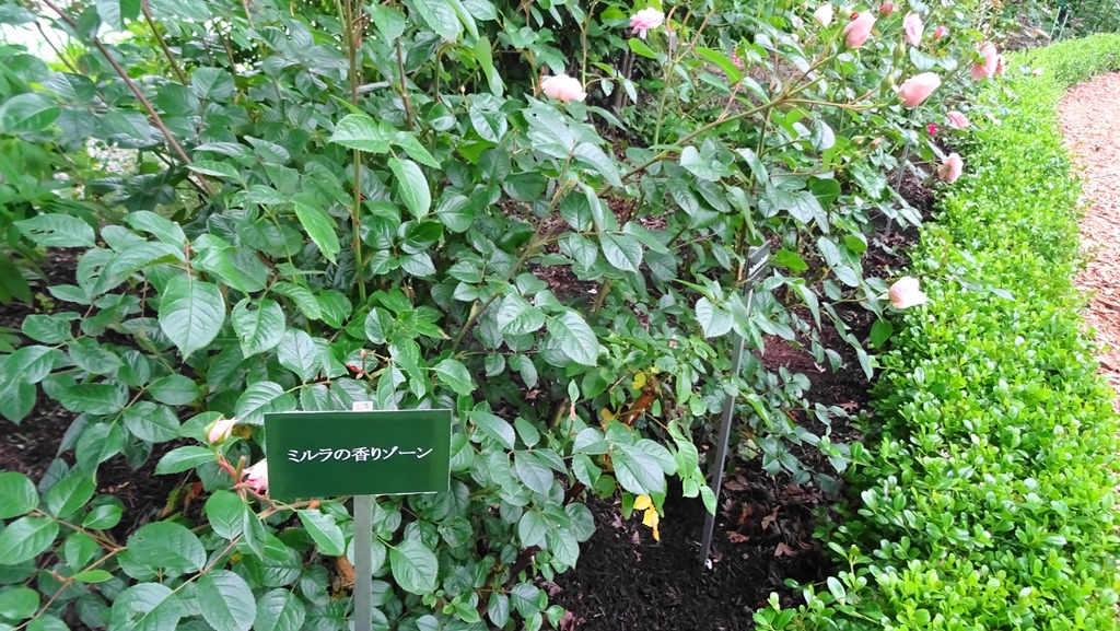 バラ園としては年々成熟していく様子がうかがえます。今年はとくにエリア別にテーマを設け、「イングリッシュローズガーデン」、「フレンチローズガーデン」、「ラビリンスローズガーデン」、「フレグランスローズガーデン」など、特徴のあるガーデンを披露しています。その中で架け橋を渡った先にある「フレグランスローズガーデン」は橋を渡った途端にふわっと香りに包まれ、ちょっとした驚きを覚えます。このエリアは香り別にゾーンとしてばらが植えられており、違いを感じることができます。