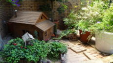 4点目は【サマーロッジ】仏2008年ピエール・オラール作シュラブ系に分類されます。花は、貴重な茶系を持つ赤茶と黄色の絞り模様で、とても細やかで複雑な絞りの入り方をしており、表情豊かです。香りは淡いムスク系の香りを放ちます。夏の暑い日差しを受けると夕方頃には花の色が全体的に薄くなり、咲始めとは別の花のようになるそうです。