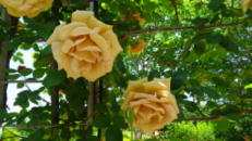 3点目は【シンギン・ザ・ブルース】米2008年J.Mouchotte作のFLばらです。蕾から少し開き加減の時に花びらを見ると剣弁立ちのように思いますが、実は丸弁の花びらで伯爵が着るシャツの襟のようなひらひらした花弁で咲きます。別名「フェルゼン伯爵」という花名を持っています。こちらも花の終わりが来ても花弁が汚れにくく、どれもきれいに咲いており、花期を長く楽しめそうです。