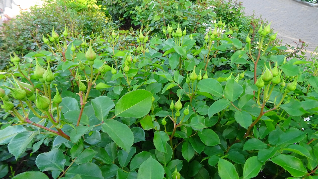 この場所は今年2月にも一度訪問しており、その時各ばらがしっかりと強剪定されていたので、今年の春も昨年同様大いに期待できるのではと思っていました。今回の訪問ではその成長過程を観察したところ、病害虫対策はほぼ完ぺきで、どの写真を見ても葉の虫食いや病気とくにこの時期うどんこが発生し始める時期ですがほとんど確認されず、ほぼパーフェクトに近い管理状況であることが確認されました。すぐ近くの「港の見える丘公園内バラ園」もおそらく同様の管理が行われていることが期待でき、どちらも無料の公園ばらとして来園者を楽しませてくれることと思います。満開の時期は過去これまで5/20前後ですが、今年はかなり早まりそうで5/10前後になるかもしれません。