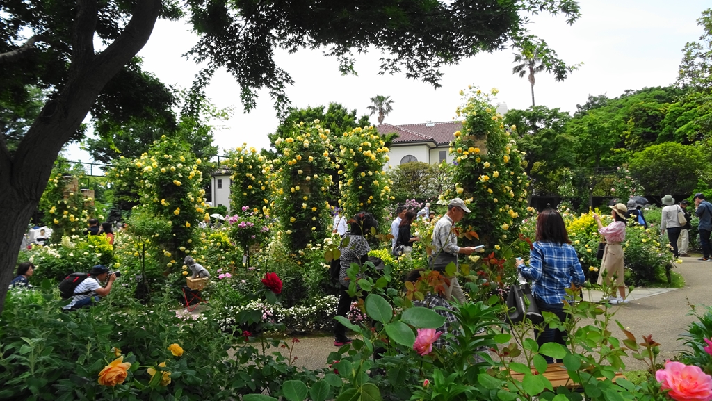 5/12(土)、横浜港の見える丘公園内にある「バラ園」を訪問して参りました。今日は一日快晴、気温も30℃近くまで上昇し、夏を思わせる暑さでした。ばらは予想通り満開、ばらの海を泳いでいるような感覚と香りに包まれ至福の時を過ごすことができました。