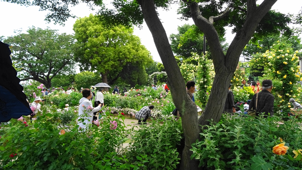 5/10(木)、横浜港の見える丘公園内にある「バラ園」を訪問して参りました。昼過ぎまで予想外の本格的な雨でどうなることかと思いましたが、午後に3時間ほどのきれいな晴れ間を見せて、満開のばらを大いに楽しませてくれました。雨に打たれたばらは一部無残な状態にはなっていましたが、プロの庭師が晴れると同時に花がらの処理を開始し、今日中には完了して明日以降また満開できれいなばらを楽しむことができそうです。