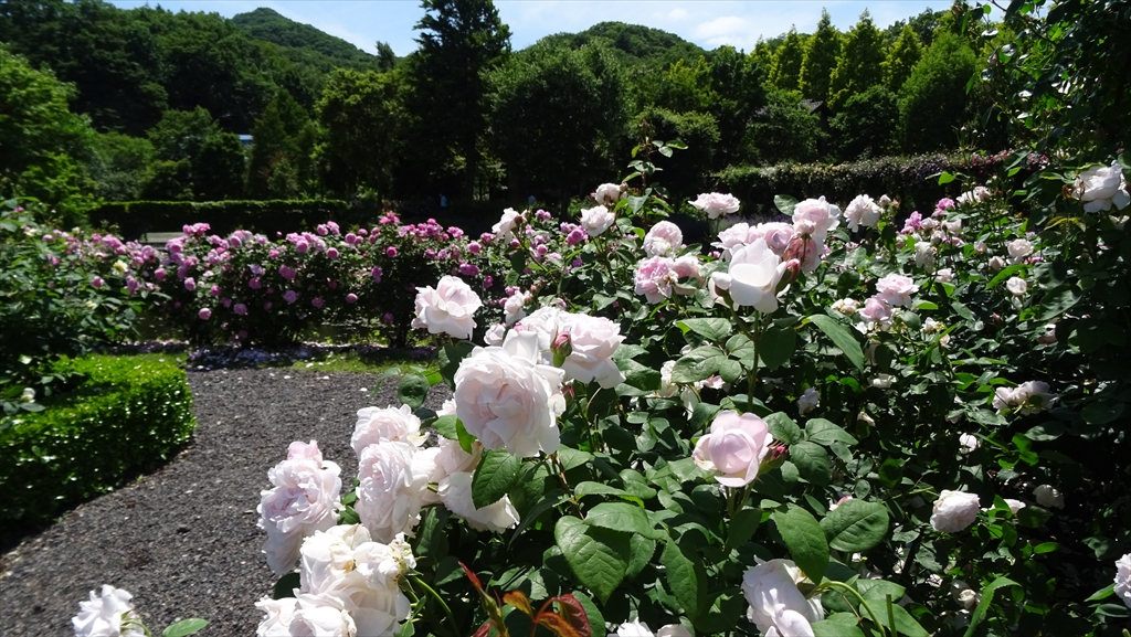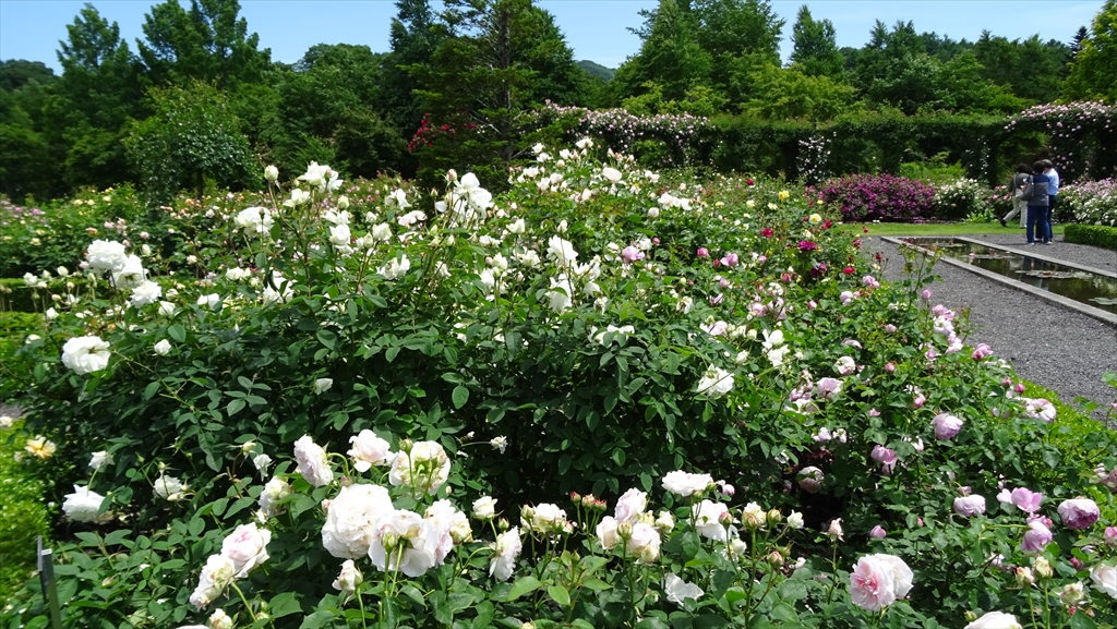 お天気は前日まで雨模様でしたが、今日はほぼ快晴、気温も軽井沢では22℃、ウインドブレーカーは使わずにちょうどよいばら観賞日和となりました。ばらの満開予想は23-26日でしたが、少し早めの訪問にもかかわらず全く見劣りせず開花を堪能することができました。軽井沢特有の澄み切った空気と普段よりも強めに感じるばらの香りに包まれて充実した一日を過ごすことができました。